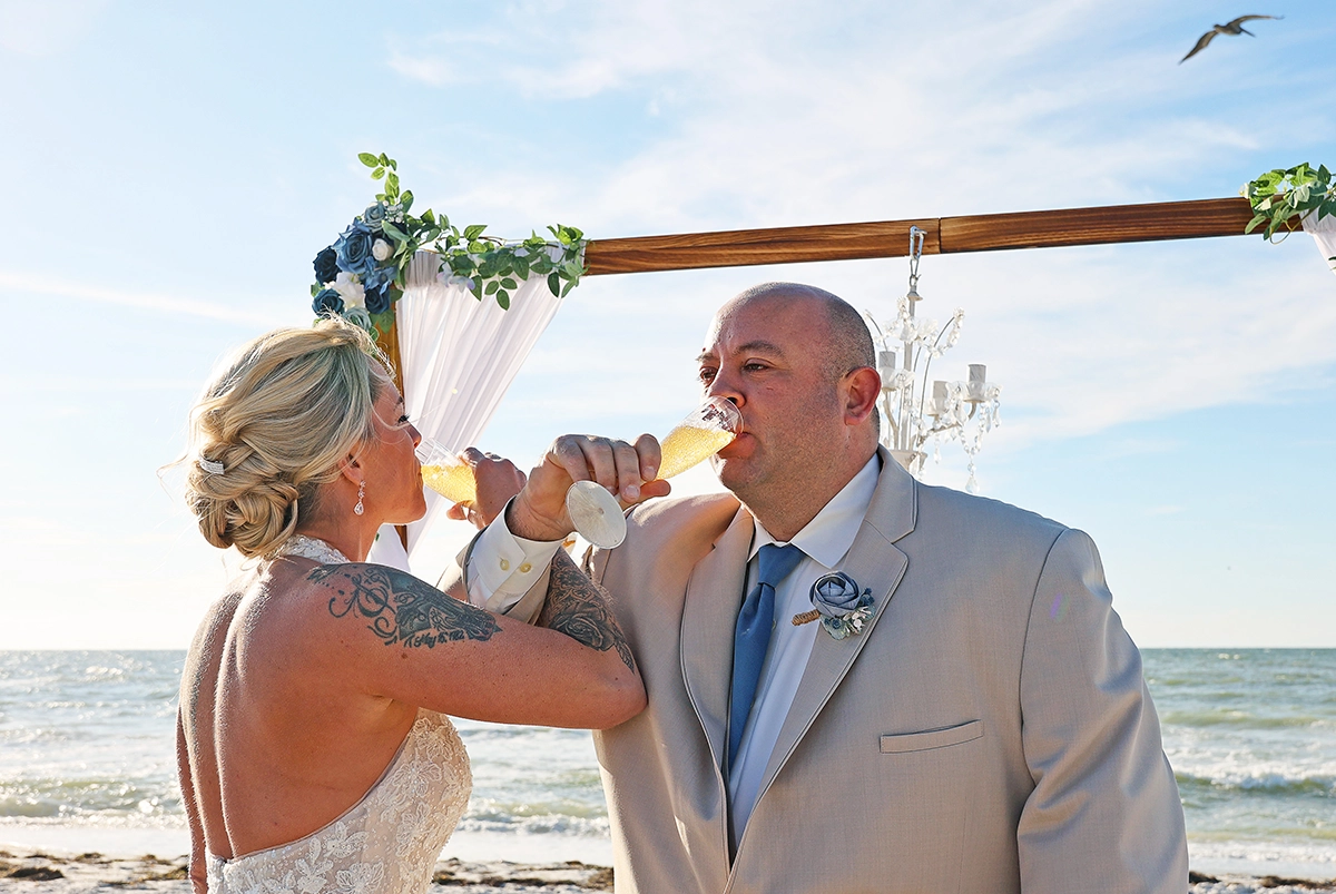 Ready to plan your own intimate Gulf Coast wedding? Tides of Love Beach Weddings is located in St. Pete/Clearwater in sunny Pinellas County, Florida. We specialize in capturing the beauty of elopement ceremonies and breathtaking sunset weddings. Let's discuss your dream destination weddings and how we can provide unforgettable wedding photography for your coastal nuptials.